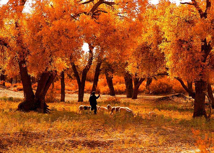 额济纳每年只有一次旅行,只因那里仅仅存在十几天的绝美绚丽,下次的邂逅又需要整整一年。来得太早,额济纳胡杨没有千姿百色的绚丽颜色,到得太晚了又会被高原的秋霜打掉胡杨树的叶子。