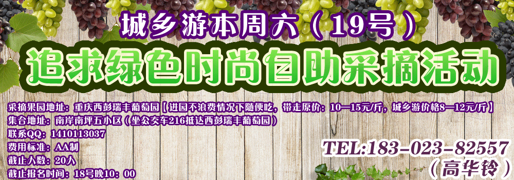 城乡游周六(19号)葡萄采摘活动开始报名啦!!![重庆]